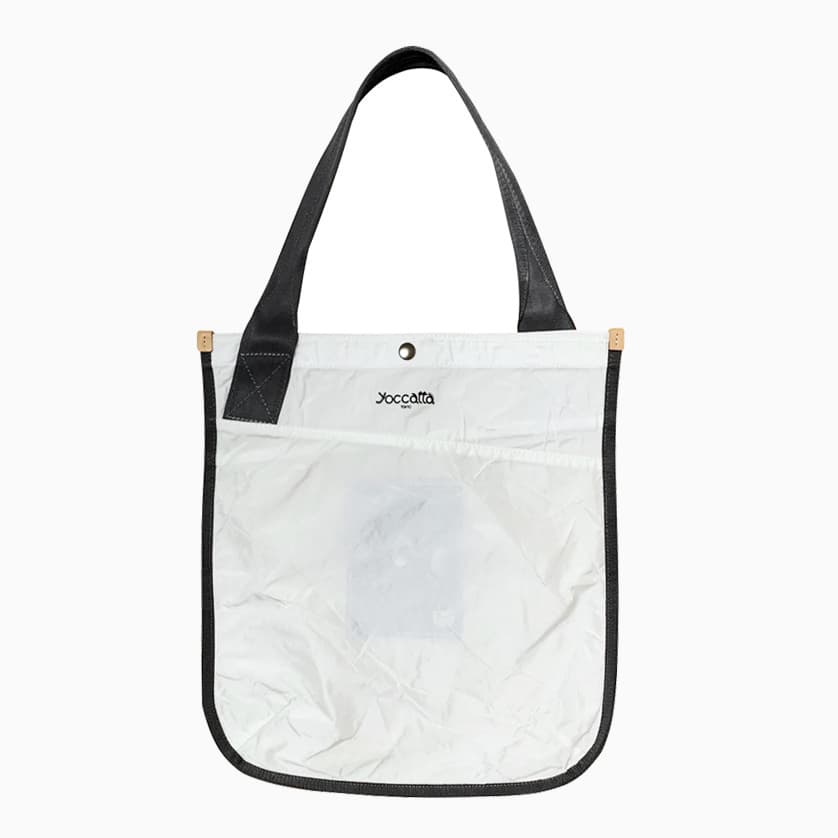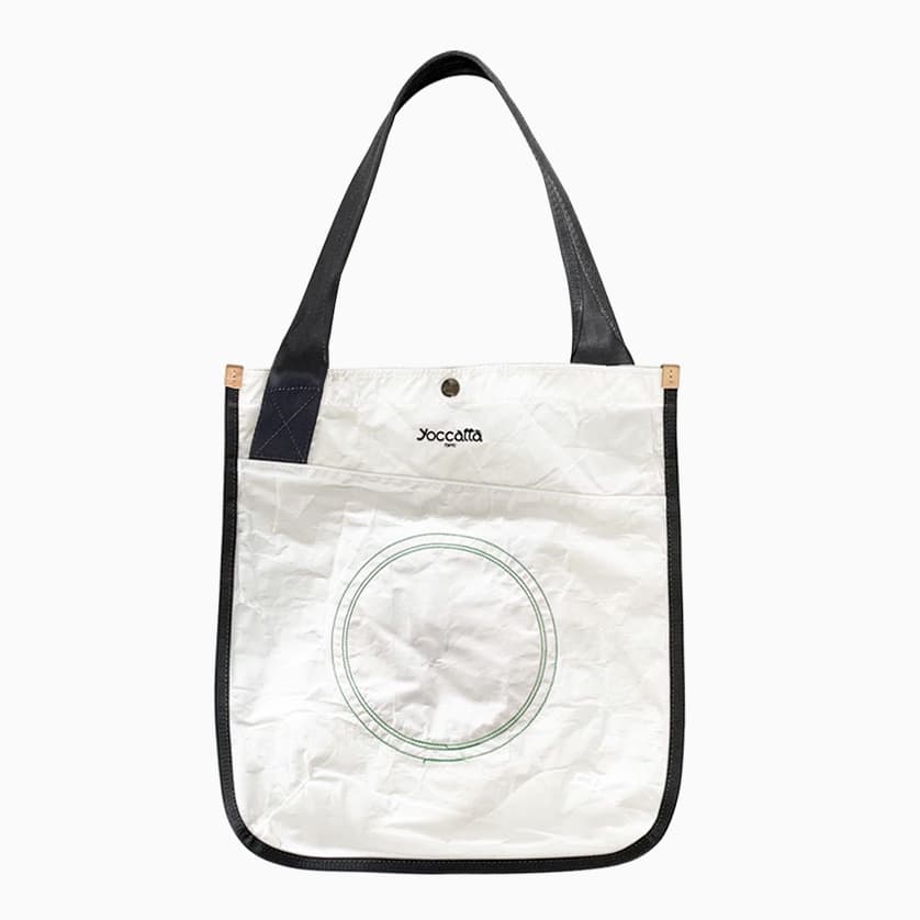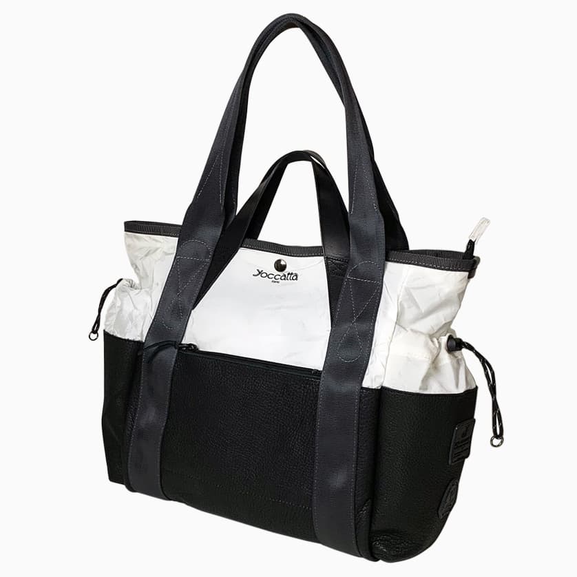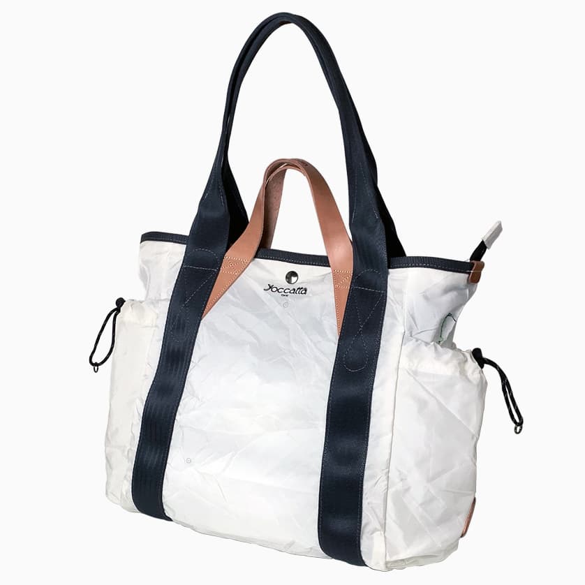 ハンドルの間隔を広くし、シートベルトのハンドルを肩にかければショルダートートとなり、ヌメ革ハンドルを持てばトートバッグになる。このユニークなバッグは、yoccattaのオリジナルデザインで、「Wハンドルトート」と名付けました。