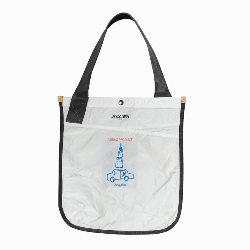 yoccattaのバッグは、さまざまな車のエアバッグを集めて仕立てています。