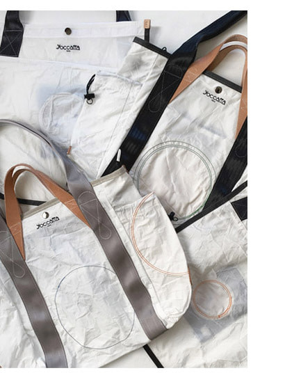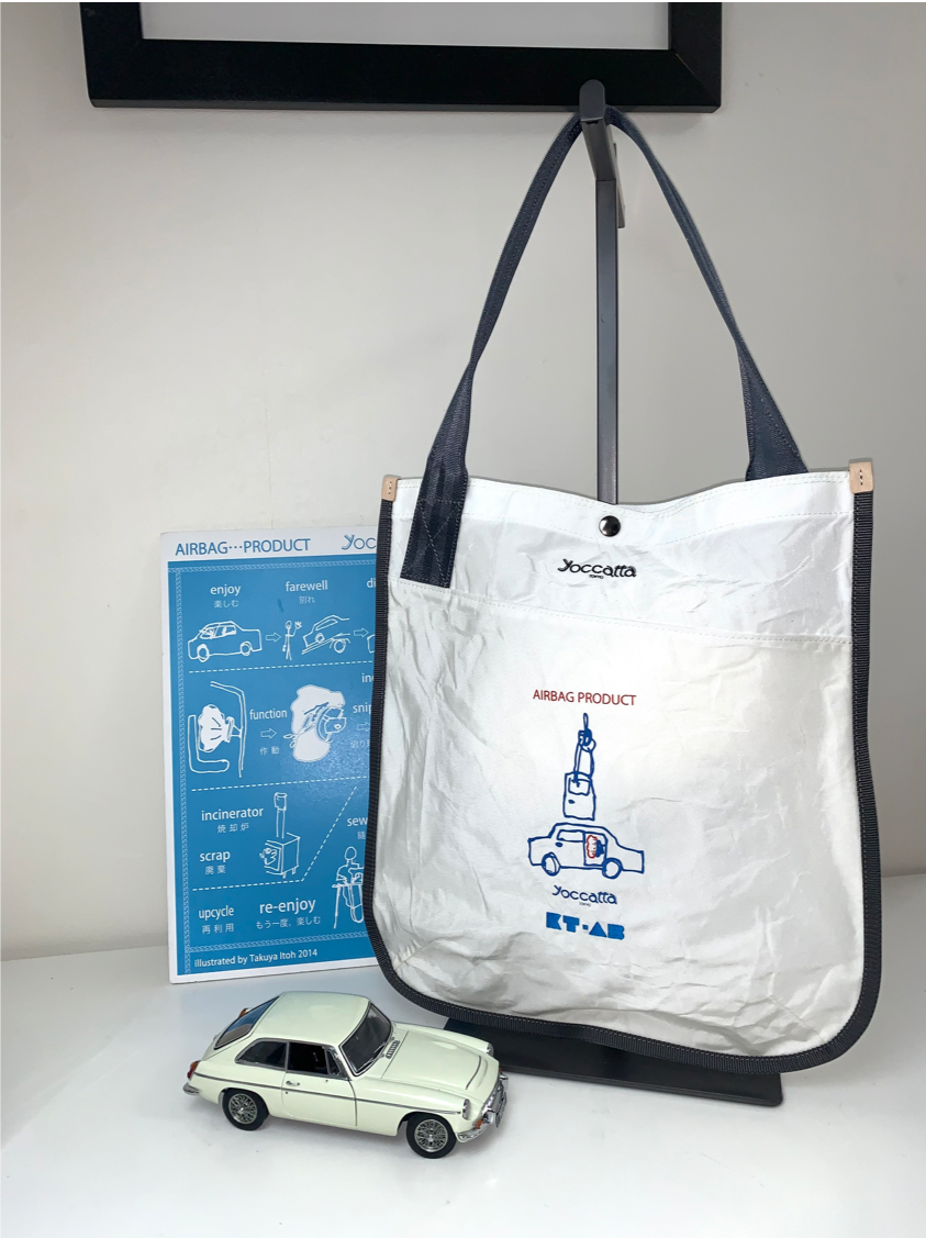 yoccattaのバッグは、さまざまな車のエアバッグを集めて仕立てています。